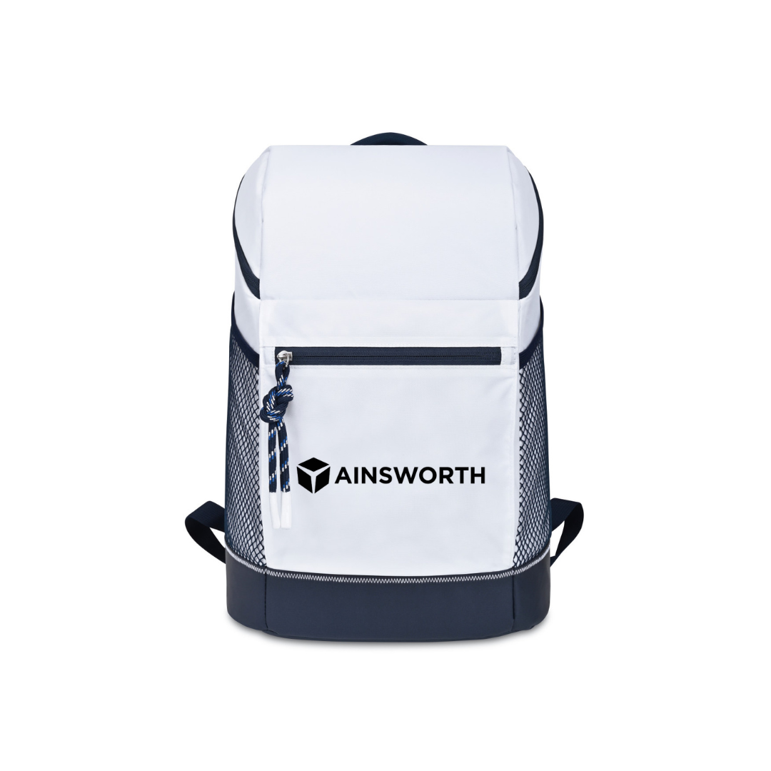 Bring along a bunch of lunch or enough drinks for the whole crew in the Harborside backpack cooler. Made of 420 and 600 Denier nylon material with a insulative PEVA lining, a full zippered closure, a wide opening for easy loading and unloading, side mesh bottle and utensil pockets and adjustable shoulders straps. The roomy interior is ready to hold all of the fixings you need to make it a meal. There's even an attached bottle opener to get the party started. Add a company logo or message to customize.