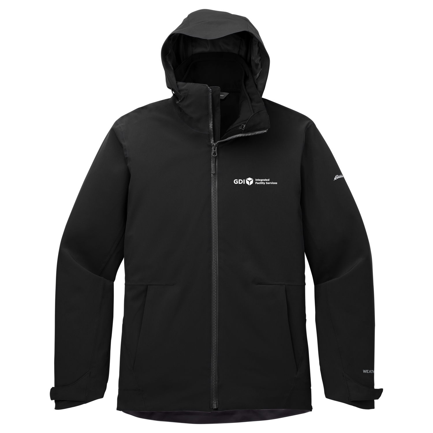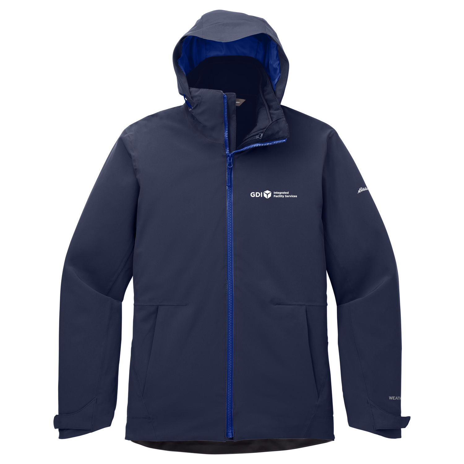 Engineered for complete adaptability to weather conditions on and off the mountain, this versatile 3-in-1 system jacket has a fully seam-sealed shell engineered from waterproof and breathable 5K/5K fabric and an inner soft shell jacket. Exclusive WeatherEdge and StormRepel® durable water-repellent technology offer unparalleled weather protection, while four-way stretch gives easy mobility. The waterproof shell and soft shell inner jacket can be worn separately or combined to meet a vast array of weather conditions. Adjustable hood with locking drawcord, full-length interior storm flap. Molded center front zippers (Shell has a waterproof zipper.) Zippered pockets. Adjustable tab cuffs with hook and loop closures. Adjustable locking drawcord hem. Decoration access pocket in shell. Contrast Eddie Bauer and WeatherEdge heat transfer logos on left sleeve. Shell made of 94/6 polyester/spandex with durable water-repellent (DWR) finish, PU laminate and 100% polyester lining. Inner jacket made of 100% polyester with a DWR finish bonded to a water-resistant film insert and 100% polyester microfleece lining.