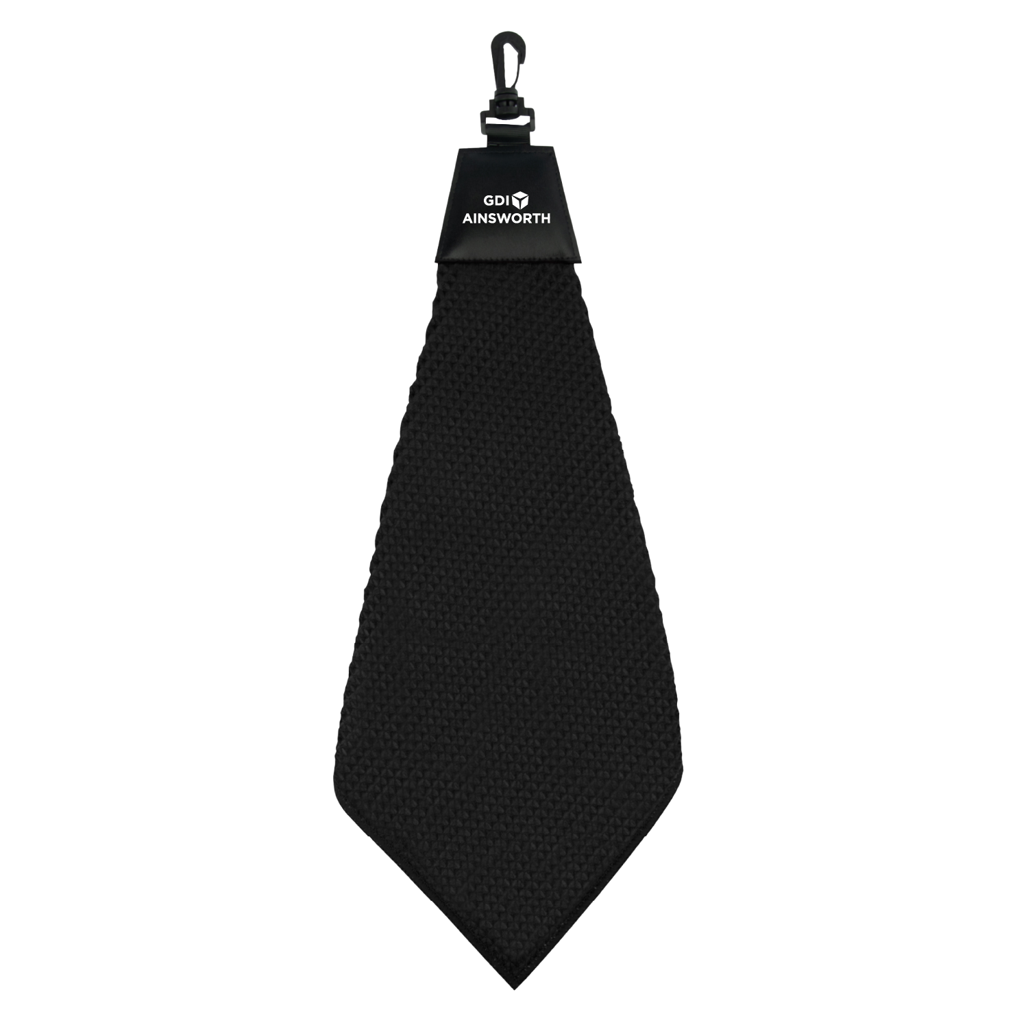 Create a swinging promotion for a golf or sporting event with this colorful towel. This super-absorbent, quick-drying 11.5" x 11.5" towel is made of microfiber polyester with a waffle construction, a triangle fold and leatherette header. It includes a plastic swivel hook that will connect to your belt loop, keychain, club or golf bag. Makes a great giveaway from a favorite golf course or pro shop. Available in assorted colors. Add your logo or message to customize.