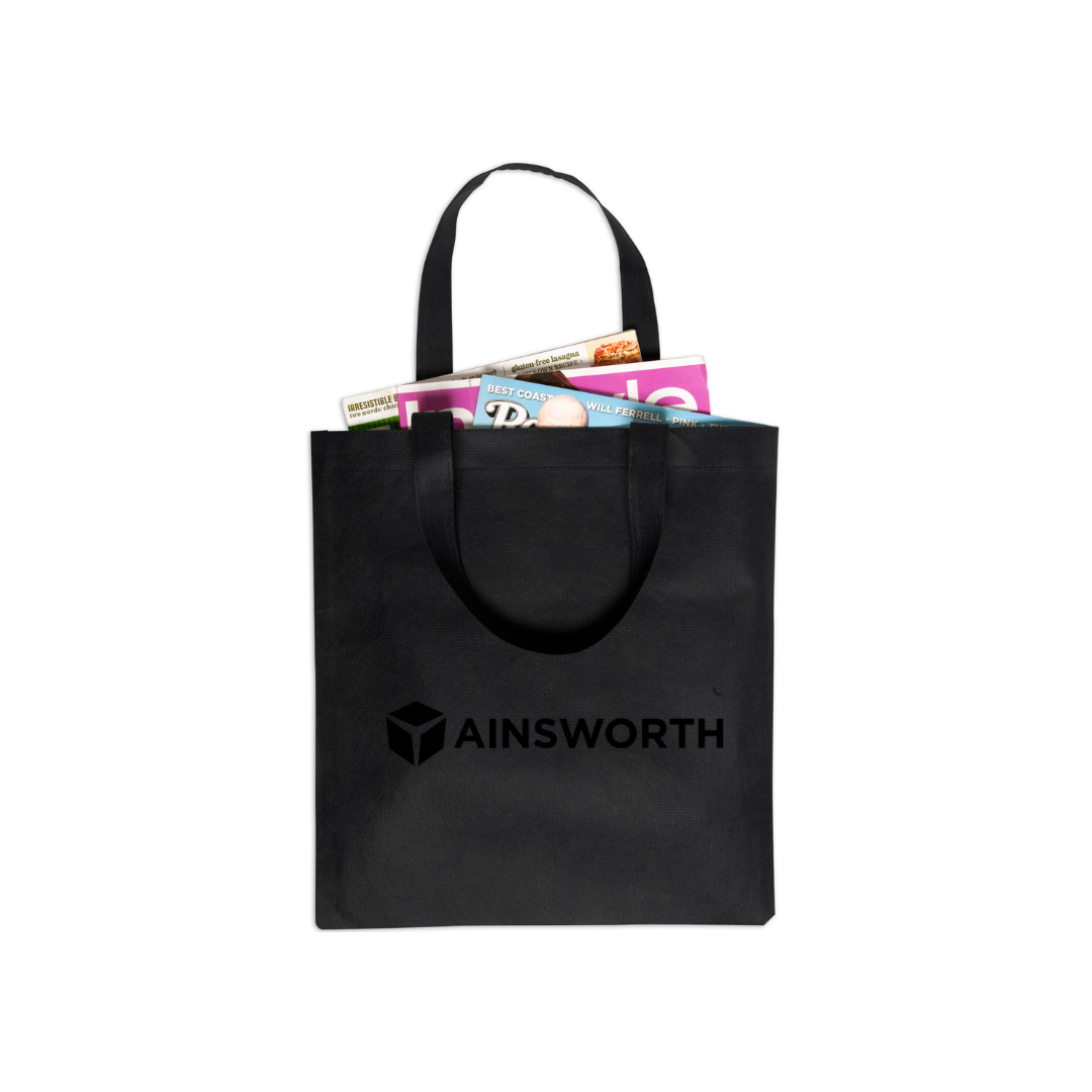 Your next promotional campaign will be "in the bag" thanks to this non-woven tote bag for convention use! Measuring 14" x 13 1/4" and available in many colors, this trendy reusable tote bag is constructed from 80 GSM non woven polypropylene and features 22" handles for comfortable carrying. What a great giveaway as a grocery tote bag for grocery stores, farmers markets, festivals, outdoor events and more! Customize with an imprint of your brand logo to create a memorable gift.