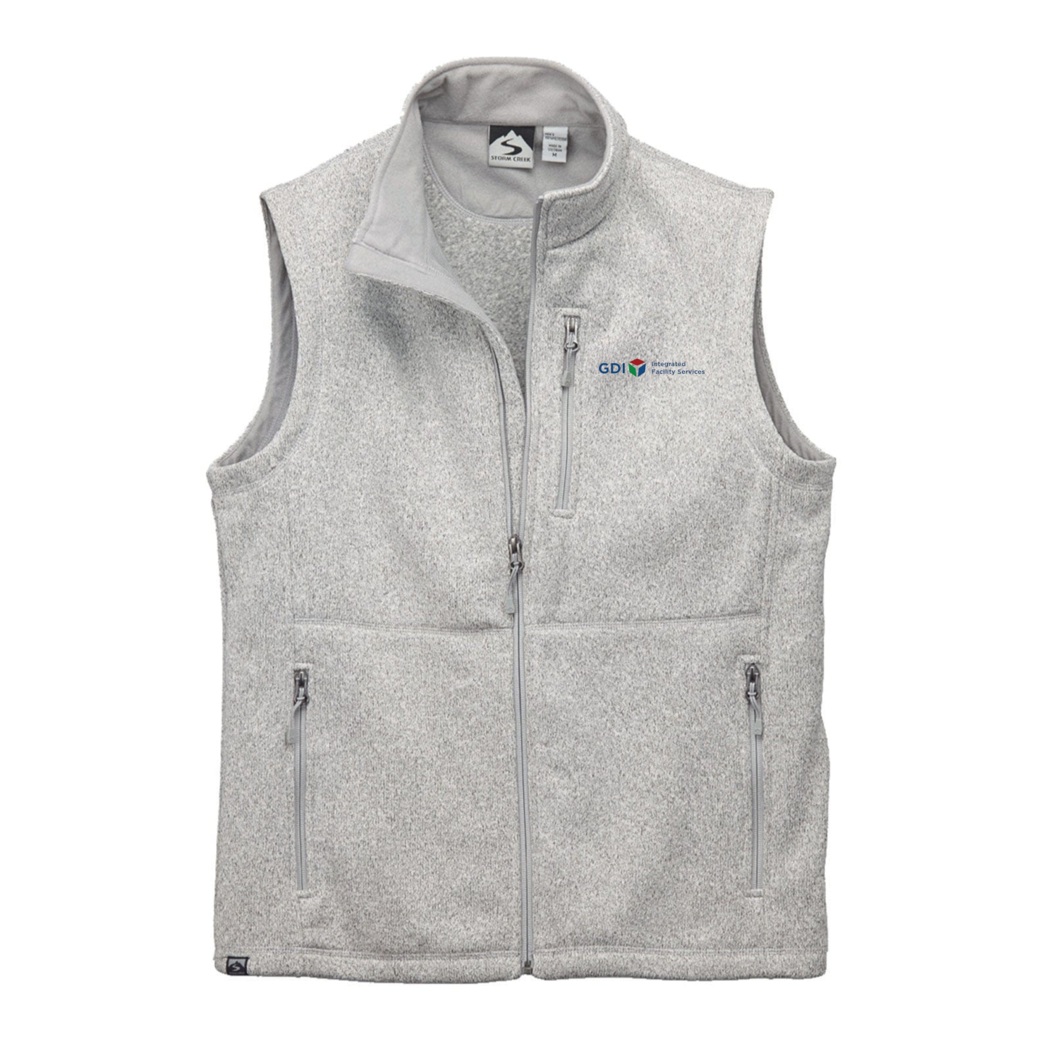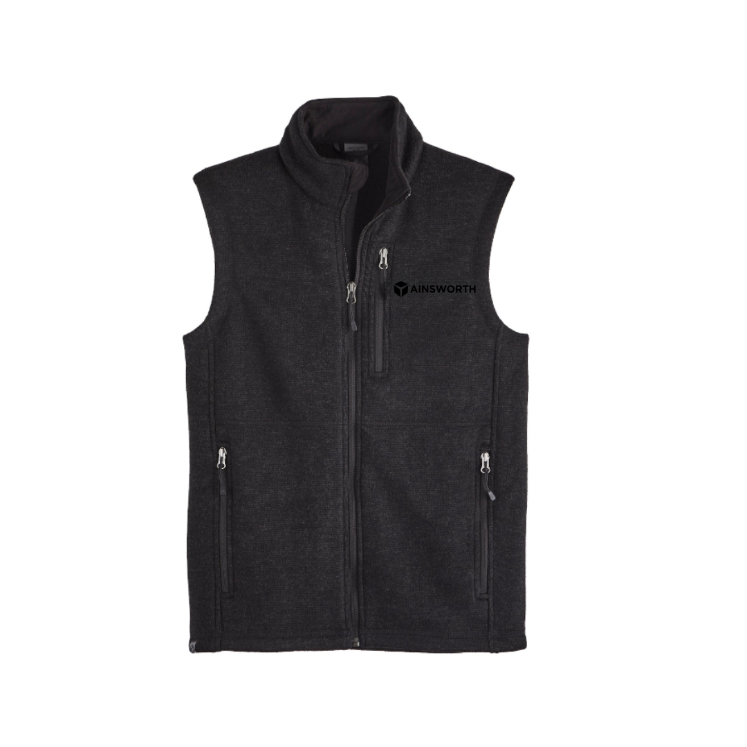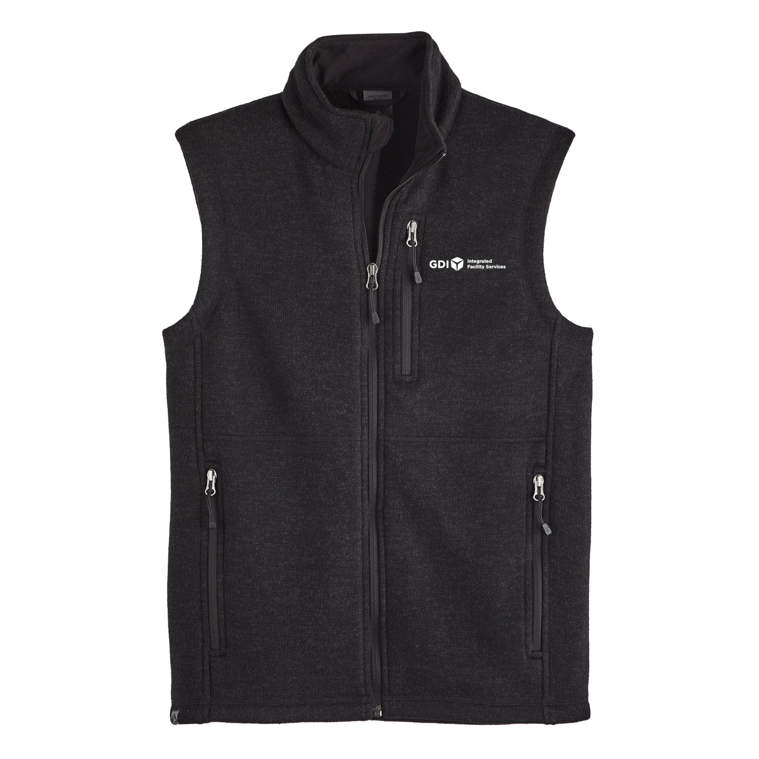 Let us face it. Wool is warm, but no one likes the scratch. Our Overachiever sweater fleece vest serves up the warmth of wool with the comfort of your favorite fireside snack. Features: Super Soft sweaterfleece, zippered chest pocket, and on-seam zippered pockets. An average of 19 plastic bottles in each garment.