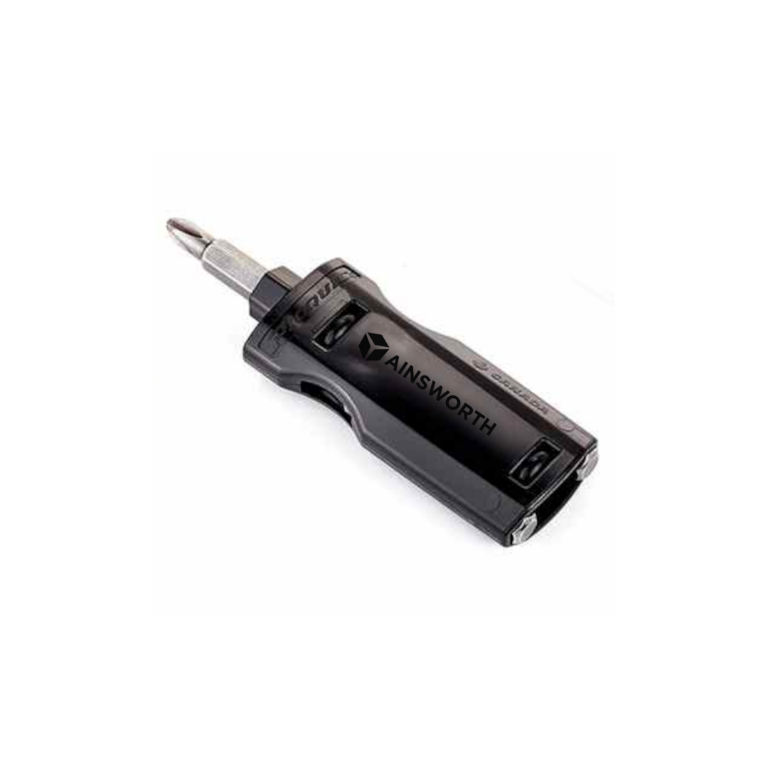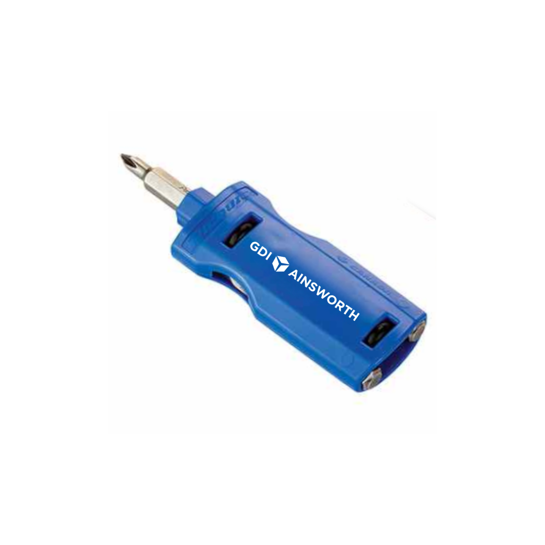 Loaded with three pro-quality 2" long power bits, The PIC offers users the three bits used most. This pocket-sized multi-bit screwdriver stores each bit in it's handy, pocket-friendly handle. To use The PIC simply insert the working bit into the magnetic shank area and start driving. Storing a bit in the rear automatically ejects the next bit selected. Bits included: 1 Flathead, 1 Small Phillips, 1 Large Phillips. Bulk packaging with a gift box option with an upcharge. Price includes 1-color pad print, with an upcharge for full-color available. Made in Canada!
